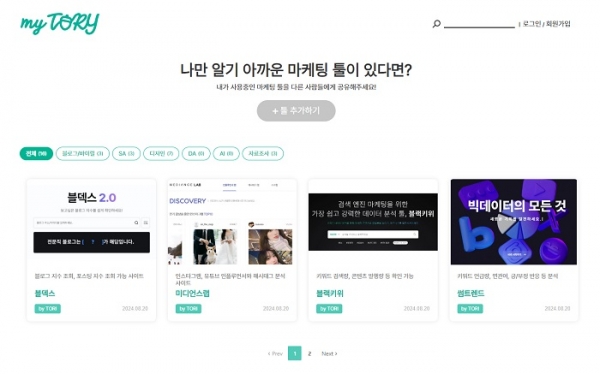 ¸¶ÀÌÅ丮´Â ¹ü¶÷ÇÏ´Â ¸¶ÄÉÆÃÅø »çÀÌ¿¡¼ À¯¿ëÇÑ ¼ºñ½º¸¦ ¼Ò°³ÇÏ´Â °ÍÀº ¹°·Ð, ´Ù¾çÇÑ ÅøÀ» Ä«Å×°í¸®º°·Î ºÐ·ùÇϰí Á¤·ÄÇÏ¿© º¸´Ù À¯¿ëÇÏ°Ô ±â´ÉÇÒ ¼ö ÀÖµµ·Ï Á¤µ·Çϰí ÀÖ´Ù.